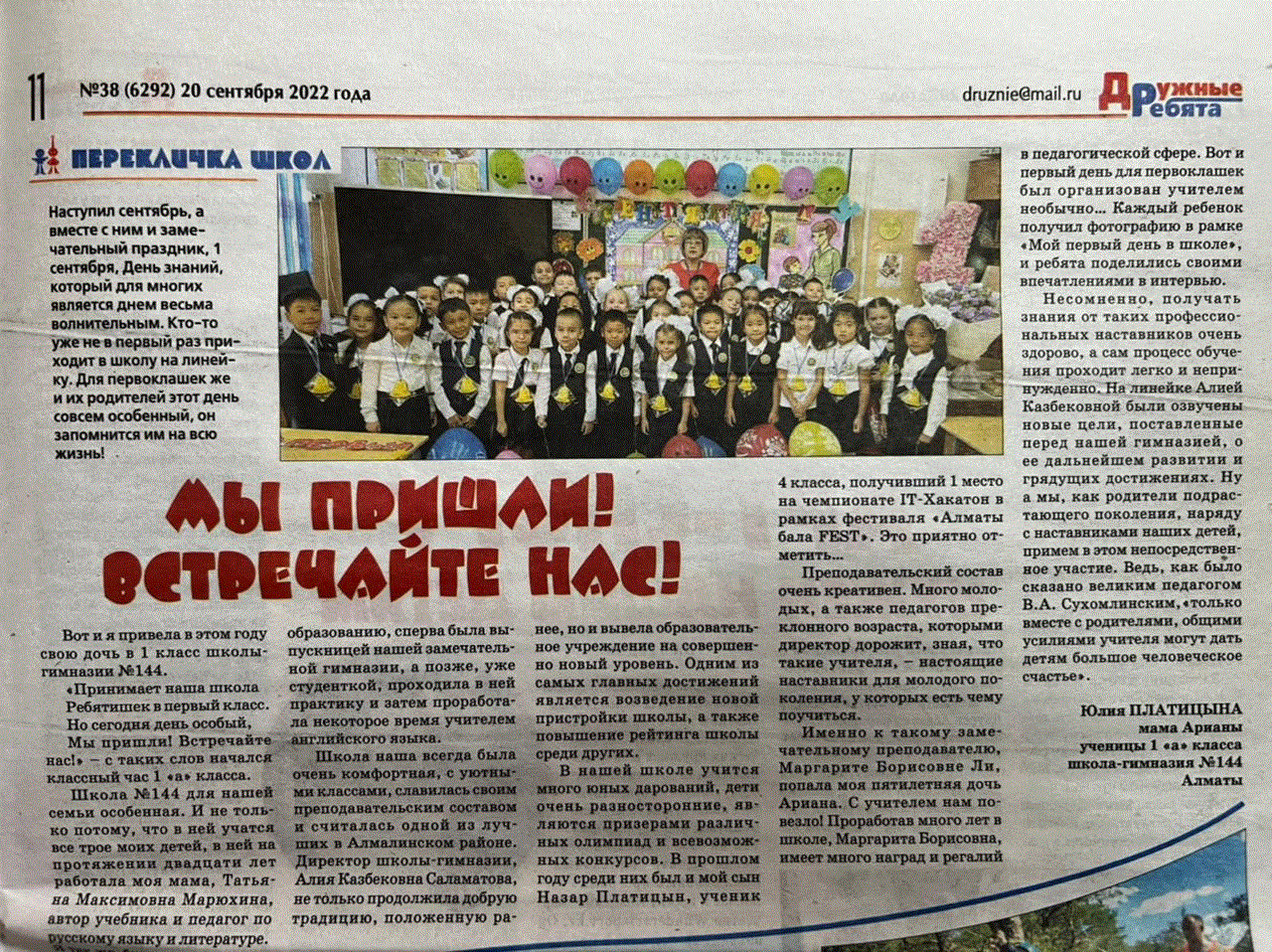 МЫ ПРИШЛИ! ВСТРЕЧАЙТЕ НАС! » №144 мектеп-гимназия