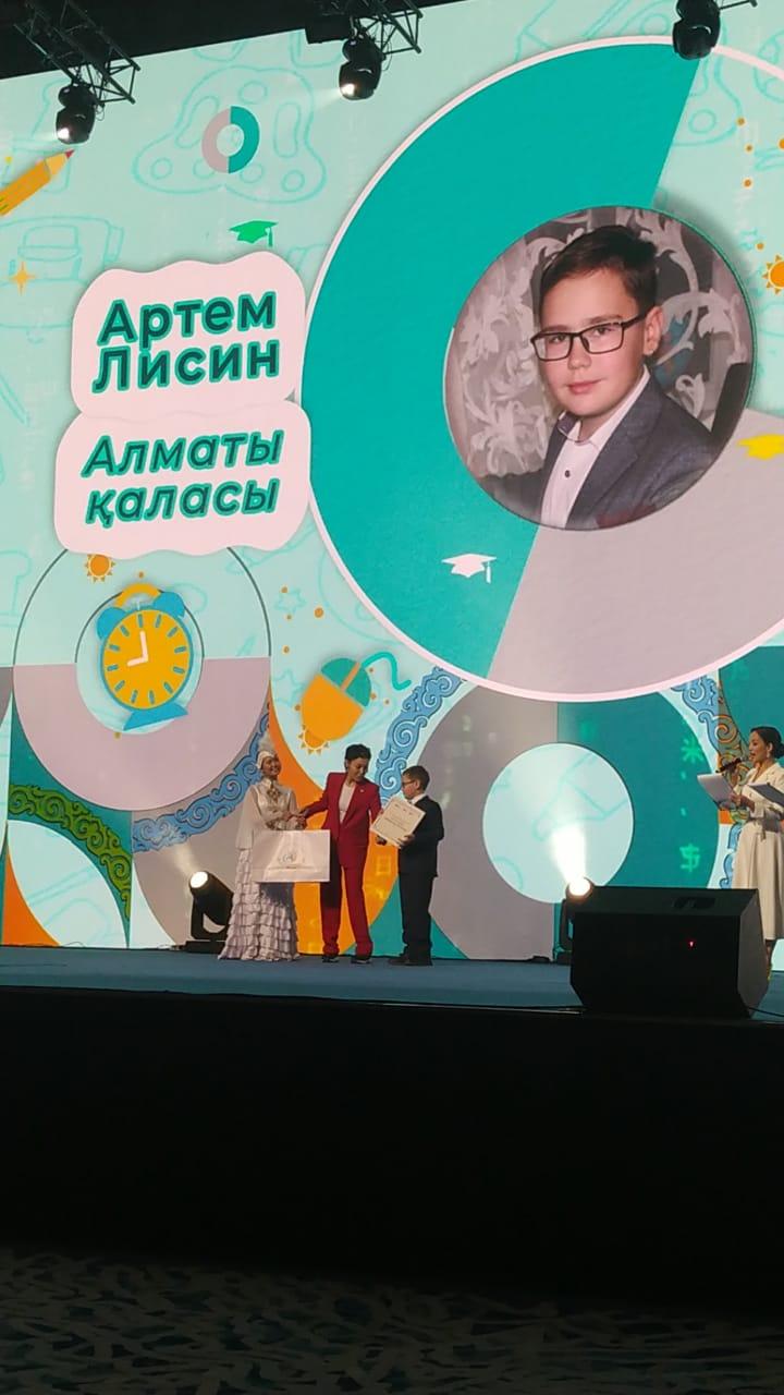 Лисин Артём, ученик "Школы-гимназии №144", победитель городского фестиваля Алматы БалаFest, в конкурсе IT-хакатон, гость Республиканского форума «Жас патриоттар» г. Астана