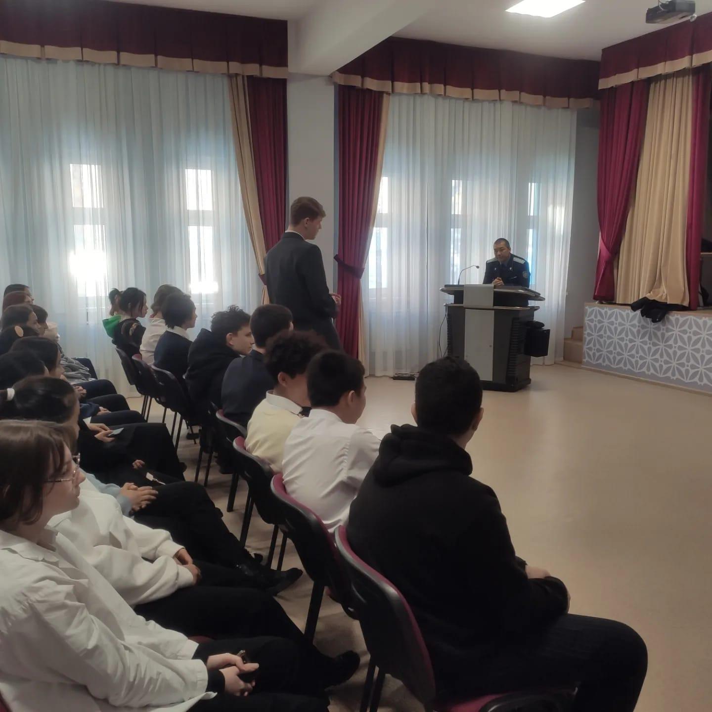 Сегодня сотрудник прокуратуры города Алматы провёл профилактическую беседу с учащимися 9-11 классов по вопросам защиты от преступных посягательств и профилактики правонарушений.
