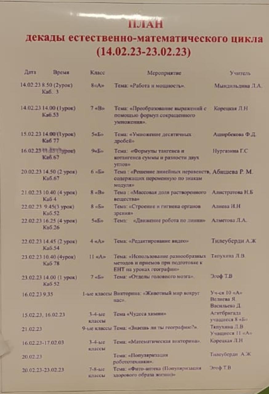 Табиғи-математикалық цикл мұғалімдерінің онкүндігі. Декада учителей естественно-математического цикла. Поздравляем коллег с открытием декады! Пожелаем удачи и профессионального вдохновения!