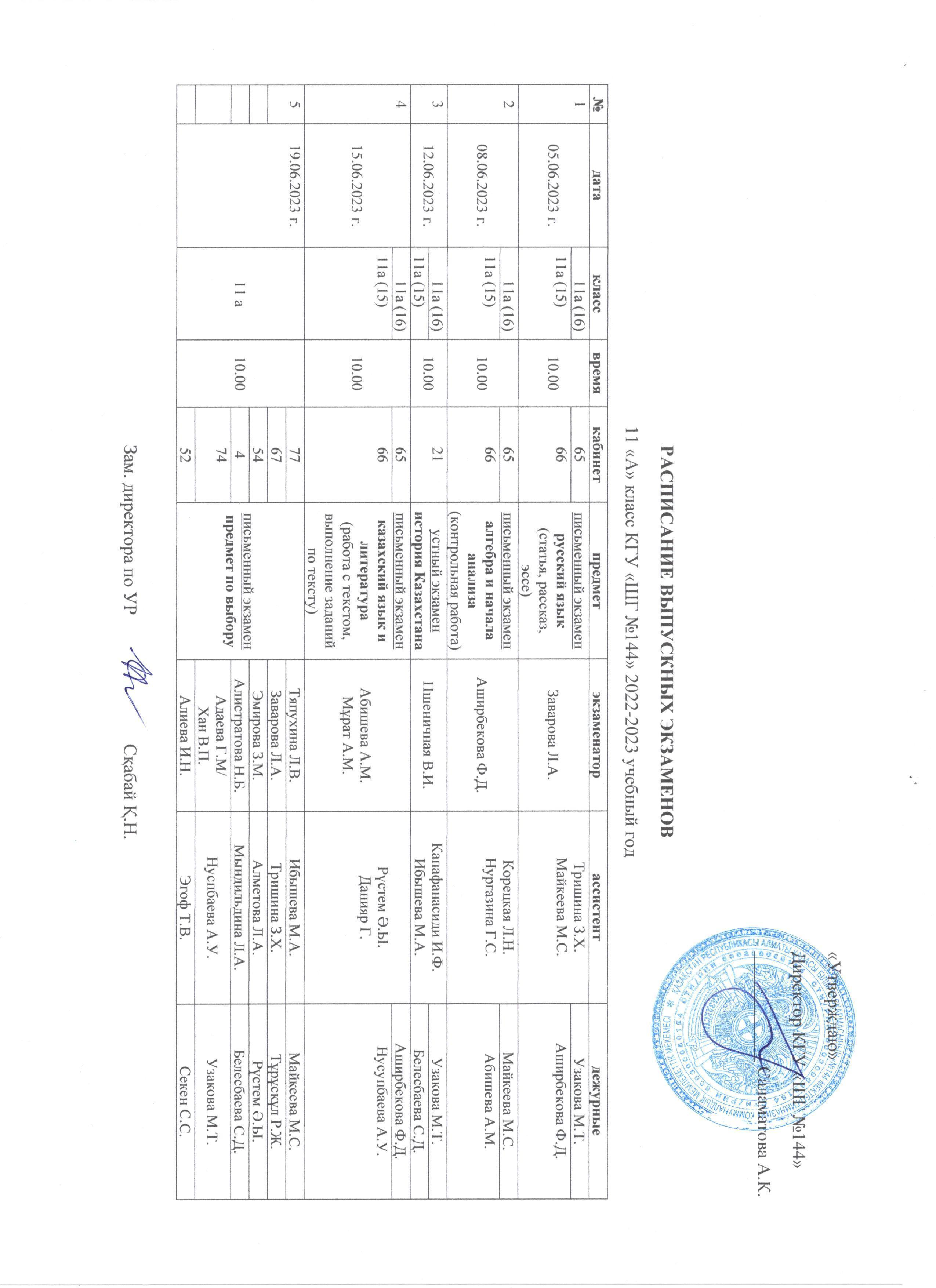 Расписание выпускных экзаменов и консультации по экзаменам для 11 классов. 11-сыныпқа арналған бітіру емтиханының кестесі және емтиханға кеңес беру » №144 мектеп-гимназия