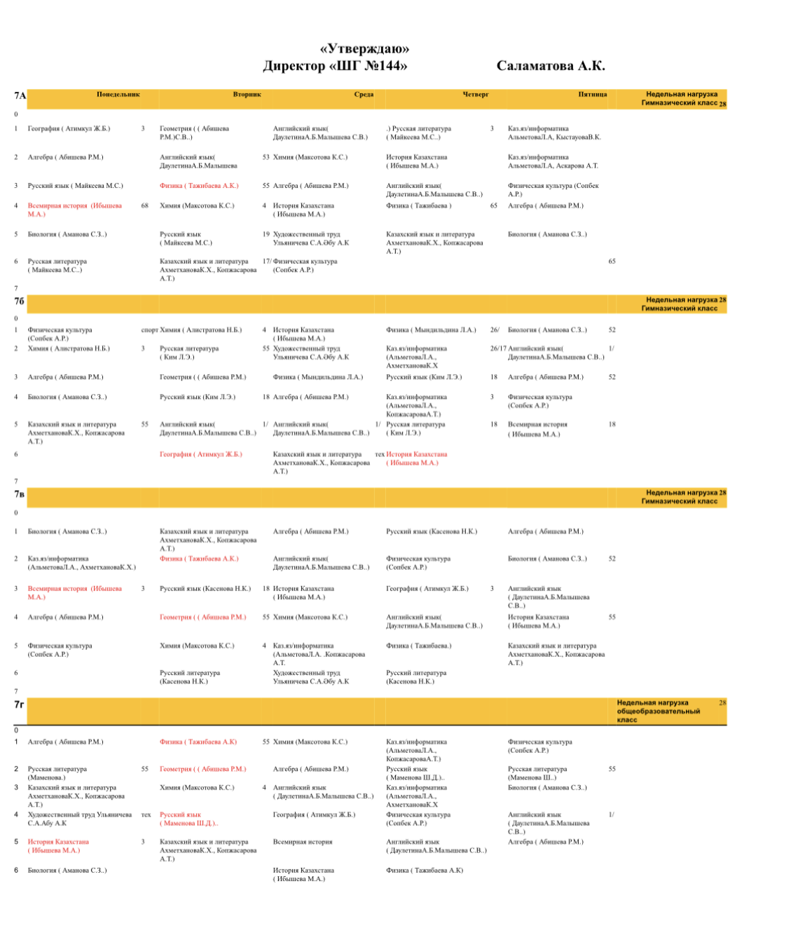 Расписание 2 четверть 2 смена » №144 мектеп-гимназия