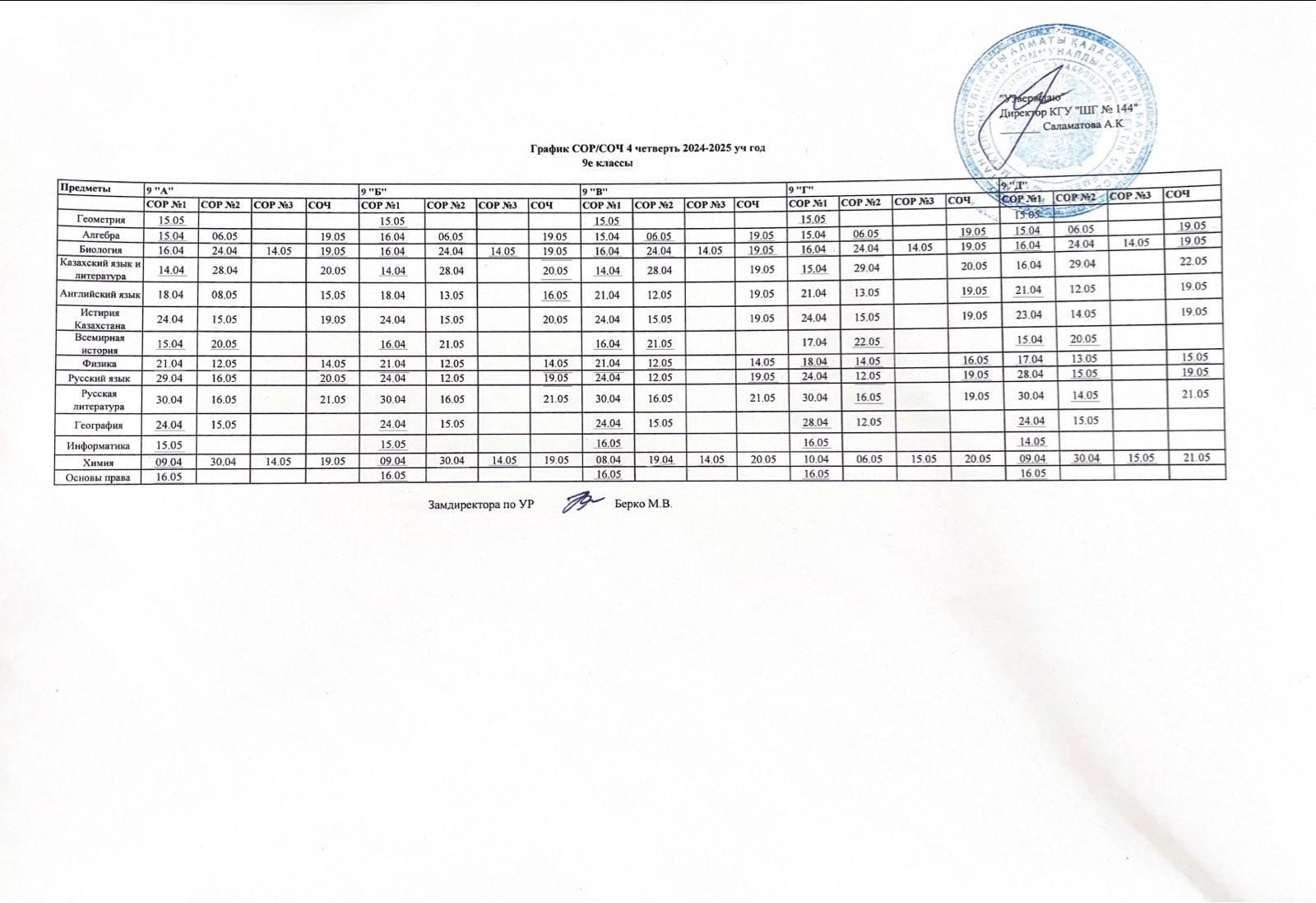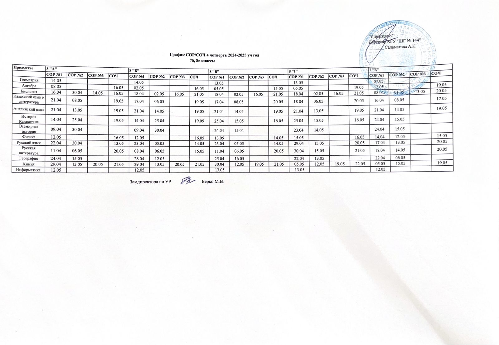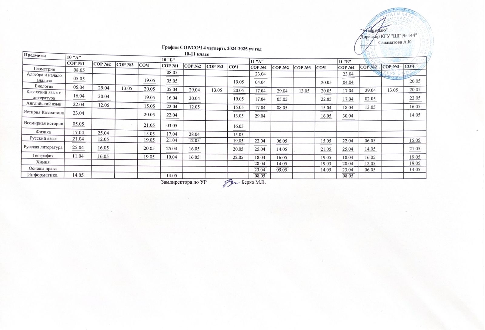 График СОР/СОЧ 4 четверть 1 смена » №144 мектеп-гимназия