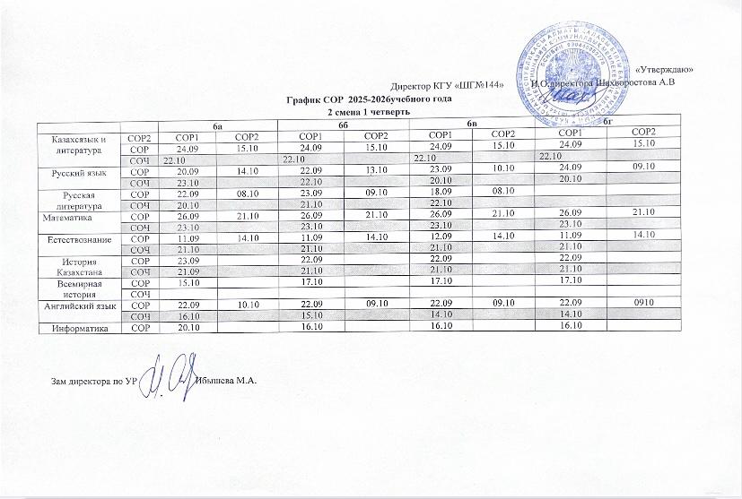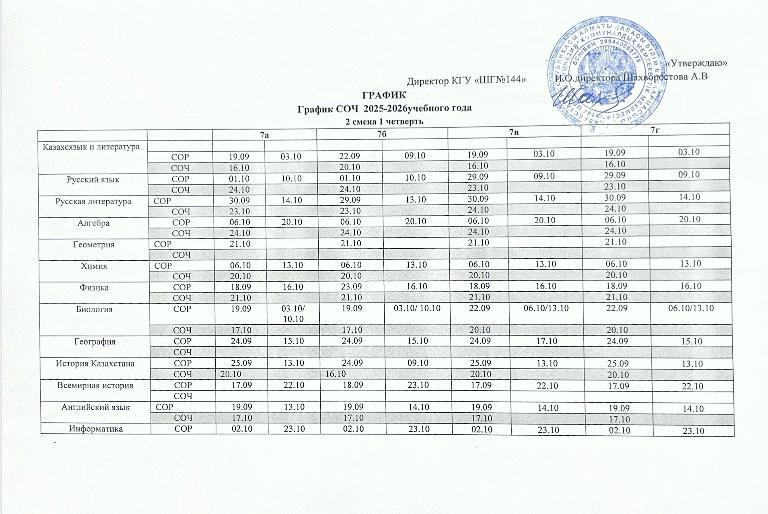 Расписание СОР и СОЧ 2 смены » №144 мектеп-гимназия