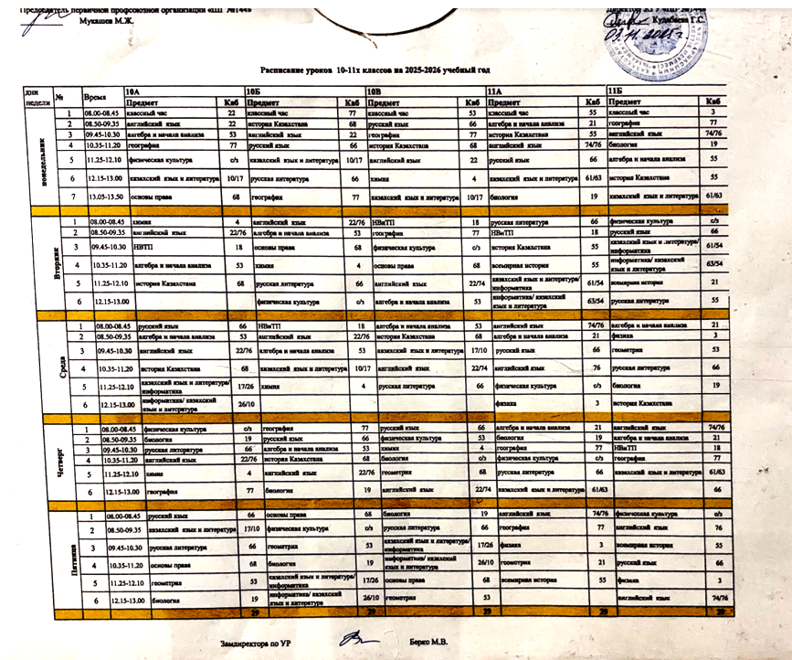 13 қараша 2025 0 1 2 3 4 5 Расписание уроков учащихся первой смены на 2025–2026 учебный год Осы беттің QR-коды:QR-код этой страницы: