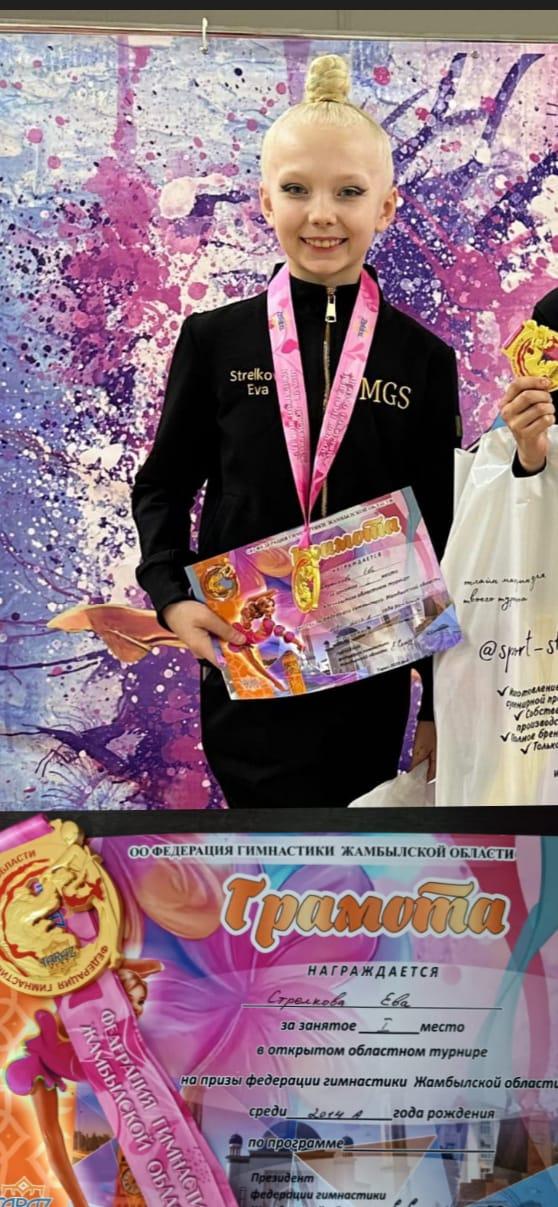 Ева стала абсолютной чемпионкой среди участниц 2014 года рождения на областном турнире по художественной гимнастике Жамбылской области!