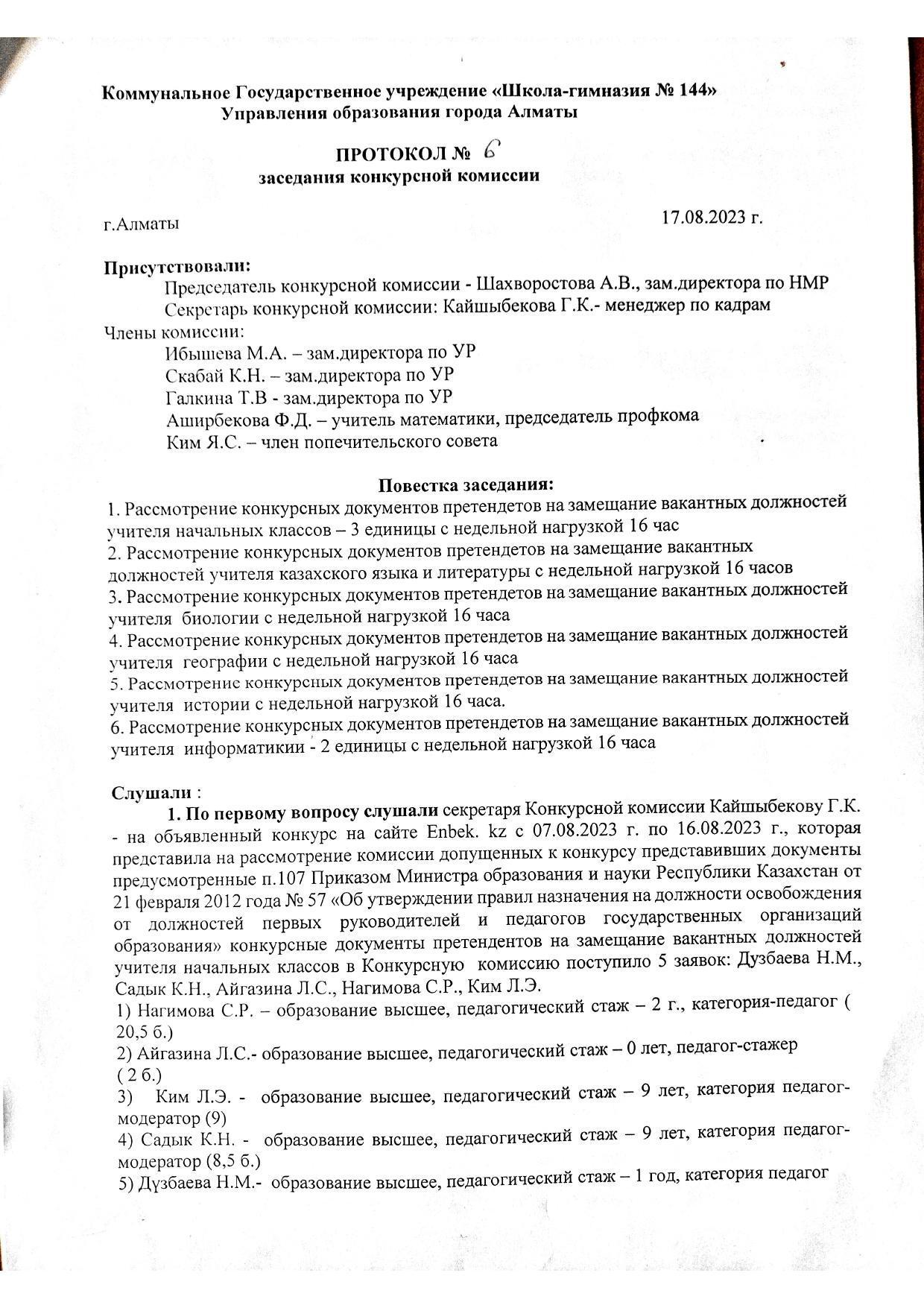 17 тамыз 2023 0 1 2 3 4 5 Протокол на конкурс Протокол на конкурс Осы беттің QR-коды:QR-код этой страницы: