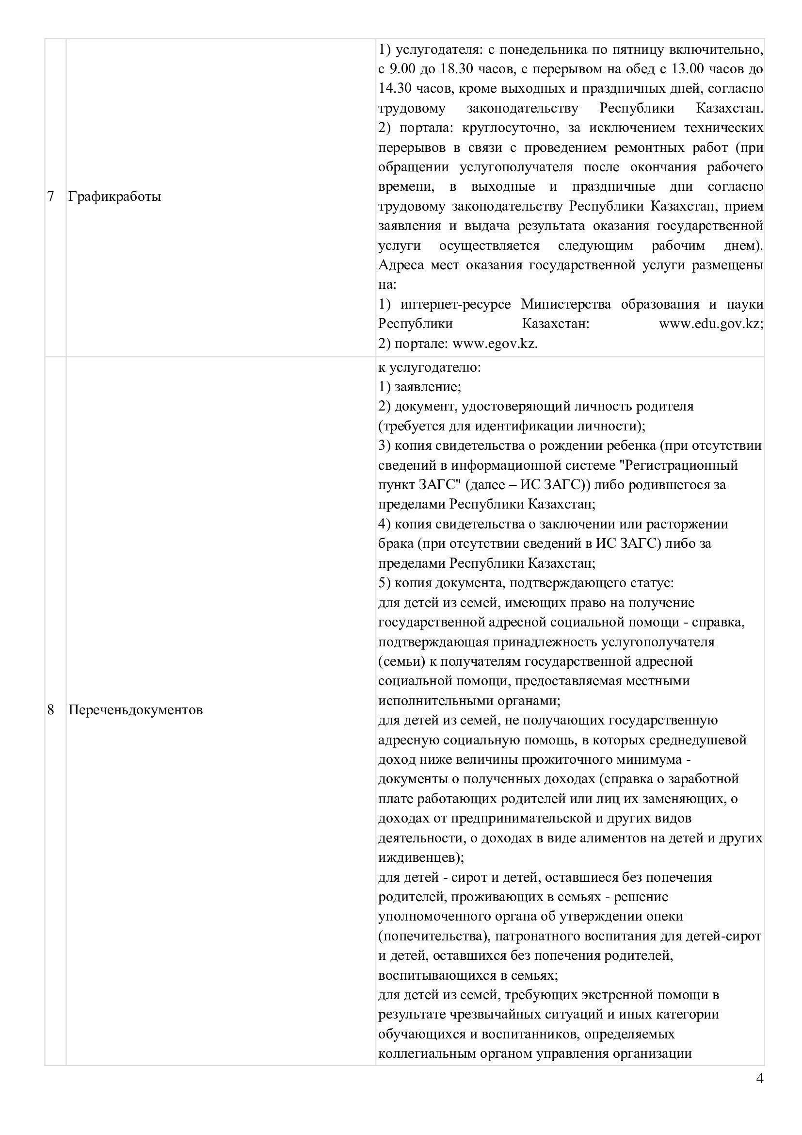 №144 мектеп-гимназия » Біз туралы » Нормативтік құжаттар » СТАНДАРТ ГОСУДАРСТВЕННОЙ УСЛУГИ «ПРИЕМ ДОКУМЕНТОВ ДЛЯ ПРЕДОСТАВЛЕНИЯ БЕСПЛАТНОГО ПИТАНИЯ ОТДЕЛЬНЫМ КАТЕГОРИЯМ ОБУЧАЮЩИХСЯ И ВОСПИТАННИКОВ В ОБЩЕОБРАЗОВАТЕЛЬНЫХ ШКОЛАХ»