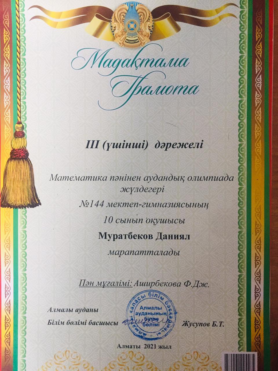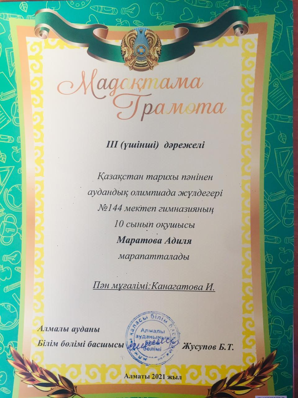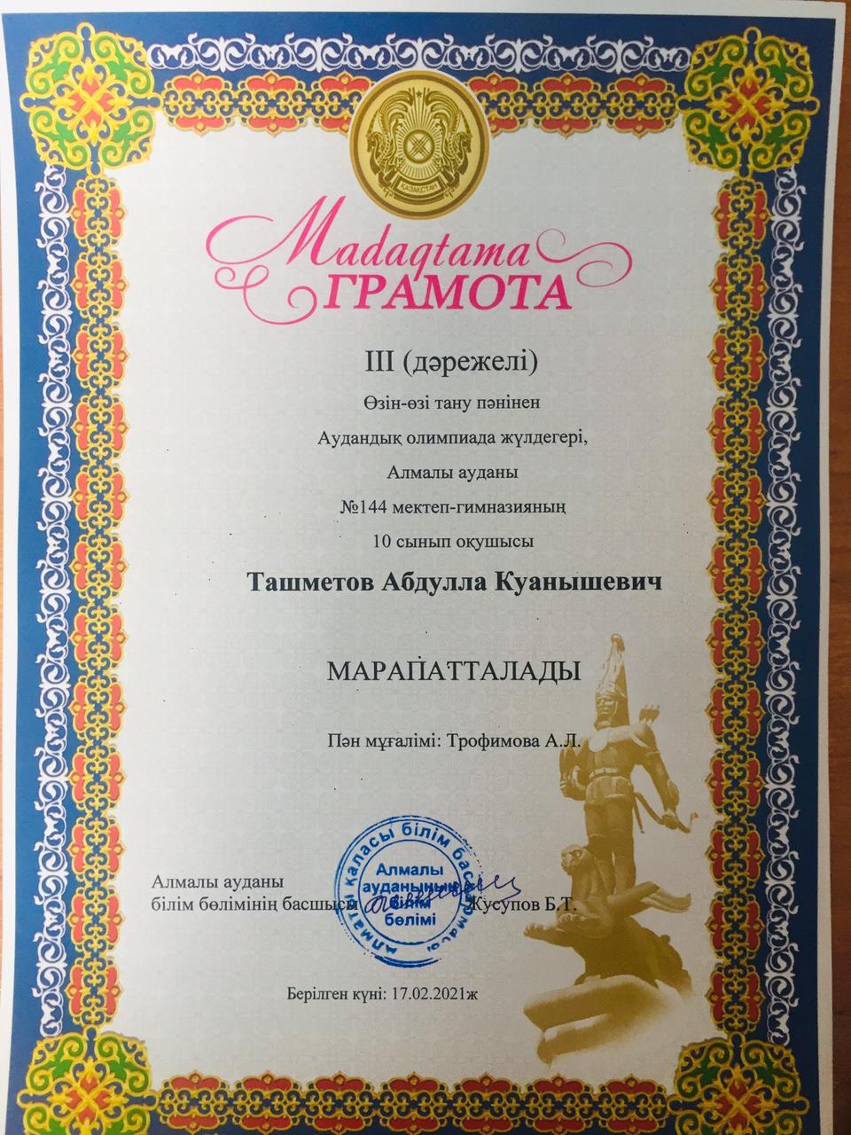 20 қаңтар 2021 0 1 2 3 4 5 Грамота Республиканская олимпиада по общеобразовательным предметам среди 8-11 классов.Поздравляем призёров!!! Осы беттің QR-коды:QR-код этой страницы: