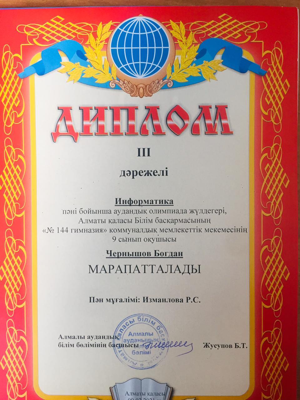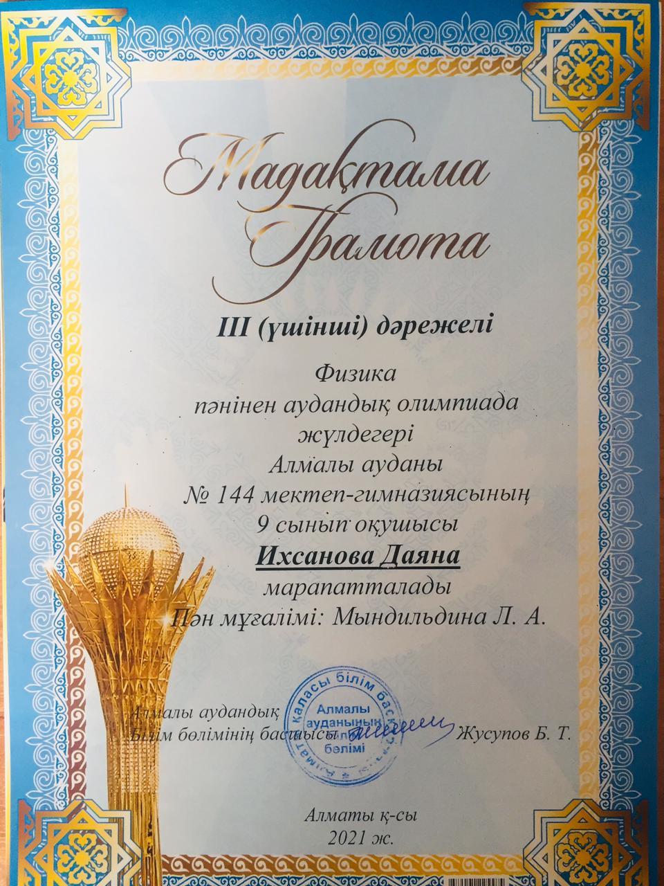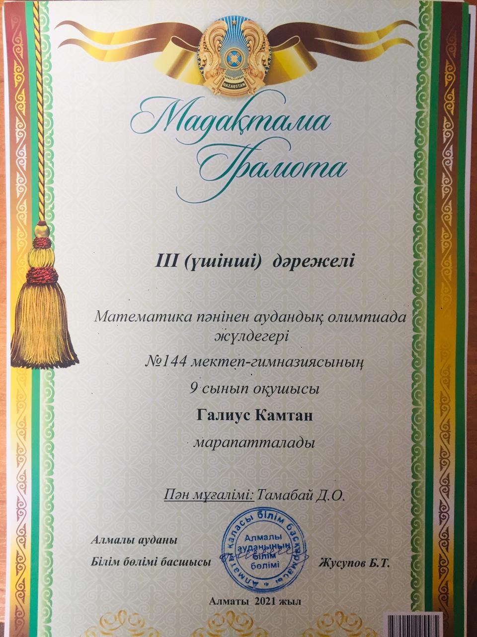 20 қаңтар 2021 0 1 2 3 4 5 Грамота Республиканская олимпиада по общеобразовательным предметам среди 8-11 классов.Поздравляем призёров!!! Осы беттің QR-коды:QR-код этой страницы: