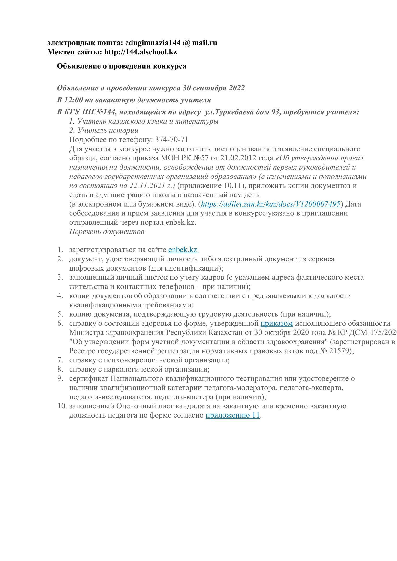 30 қыркүйек 2022 0 1 2 3 4 5 Конкурс на вакантные должности педагогов Осы беттің QR-коды:QR-код этой страницы: