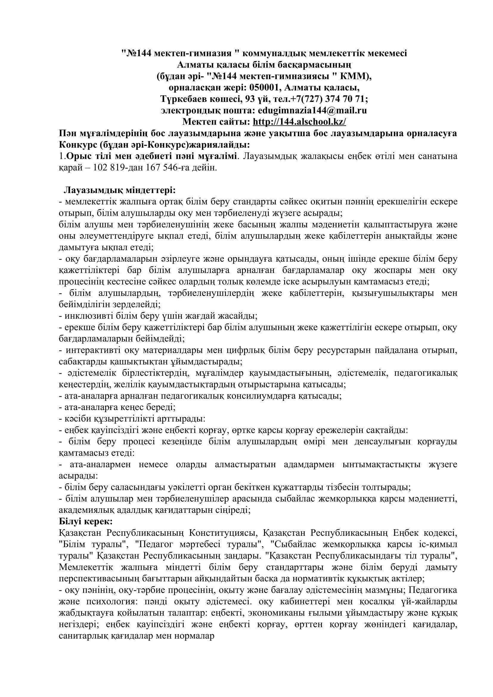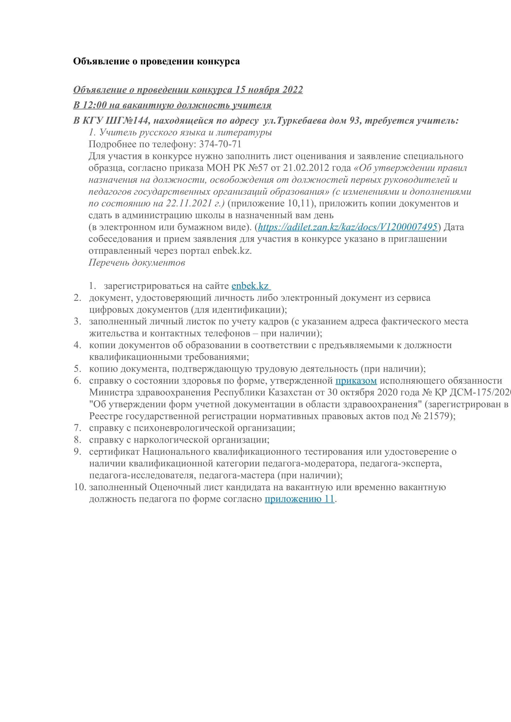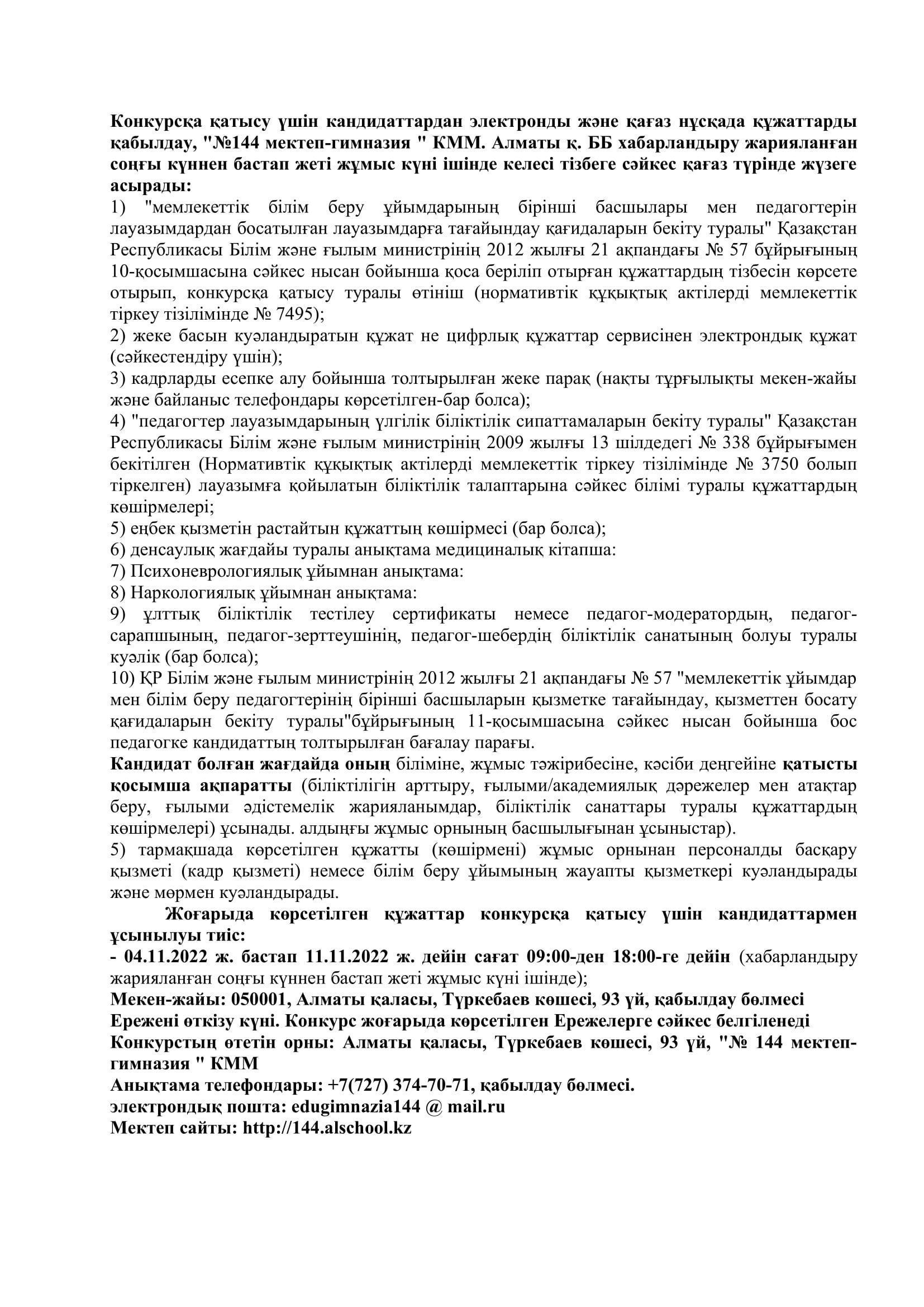 15 қараша 2022 0 1 2 3 4 5 Конкурс на вакантные должности педагогов Осы беттің QR-коды:QR-код этой страницы:
