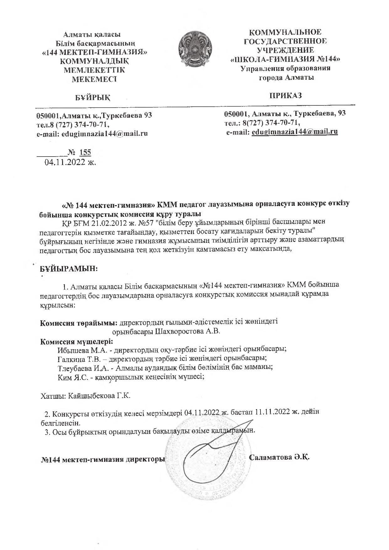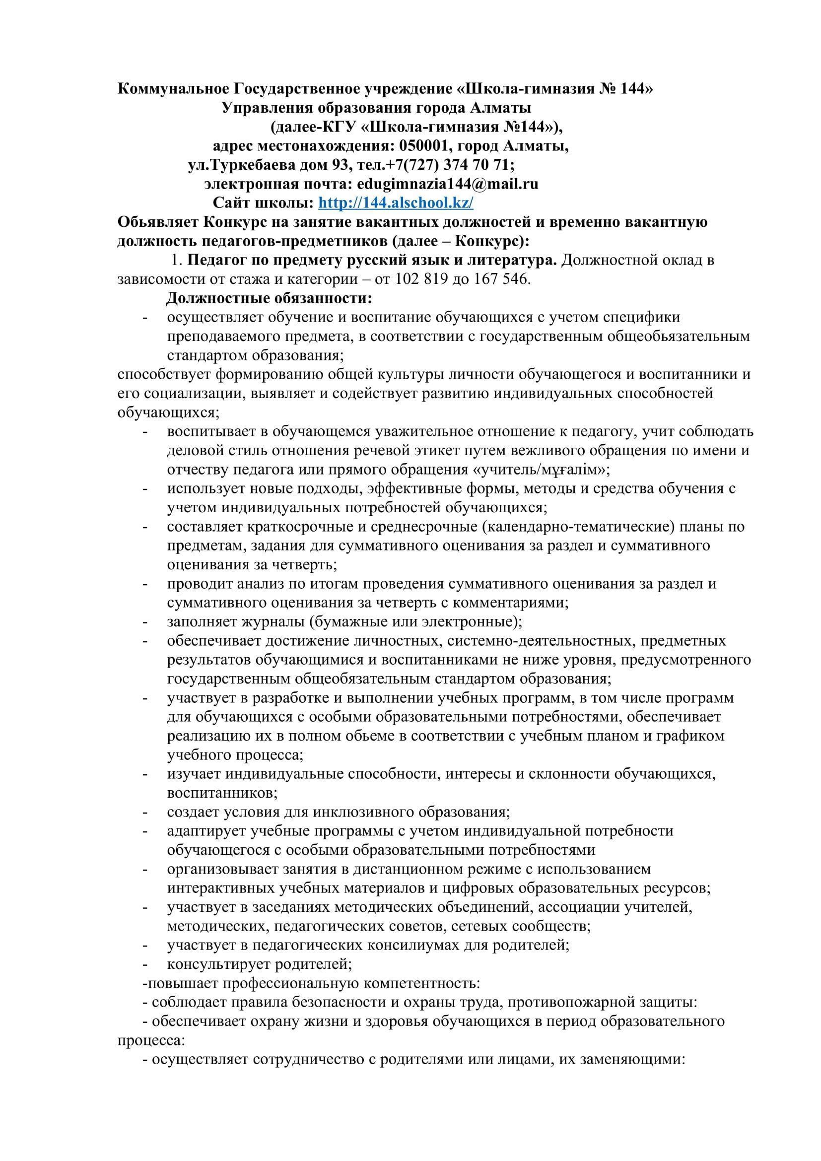 15 қараша 2022 0 1 2 3 4 5 Конкурс на вакантные должности педагогов (ноябрь 2022) Осы беттің QR-коды:QR-код этой страницы: