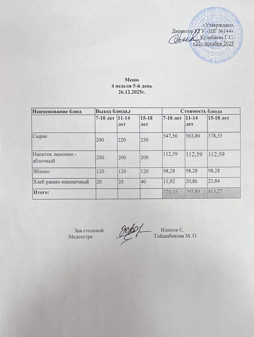 Меню 4 неделя 5-й день » №144 мектеп-гимназия