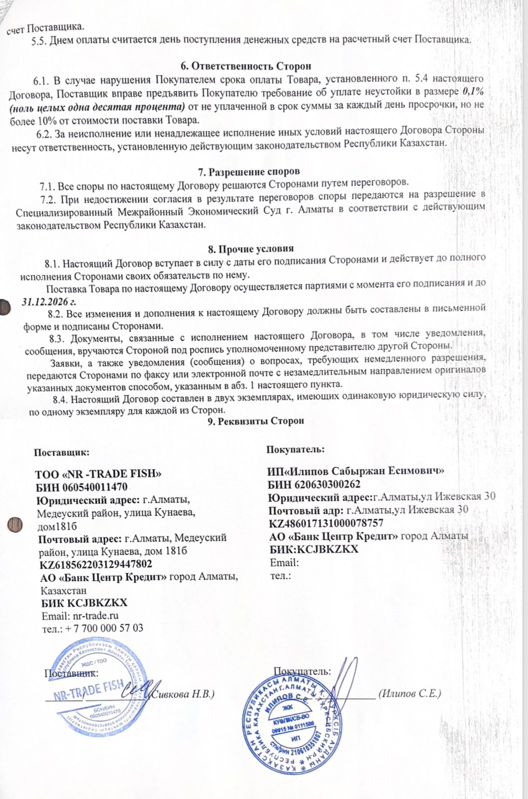 » » Договор поставки рыбы №261