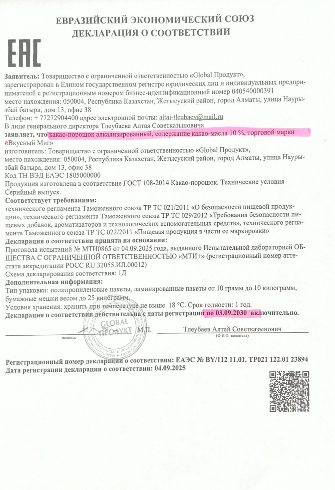 04 қыркүйек 2025 0 1 2 3 4 5 Декларация о соответствии: Какао-порошок Осы беттің QR-коды:QR-код этой страницы: