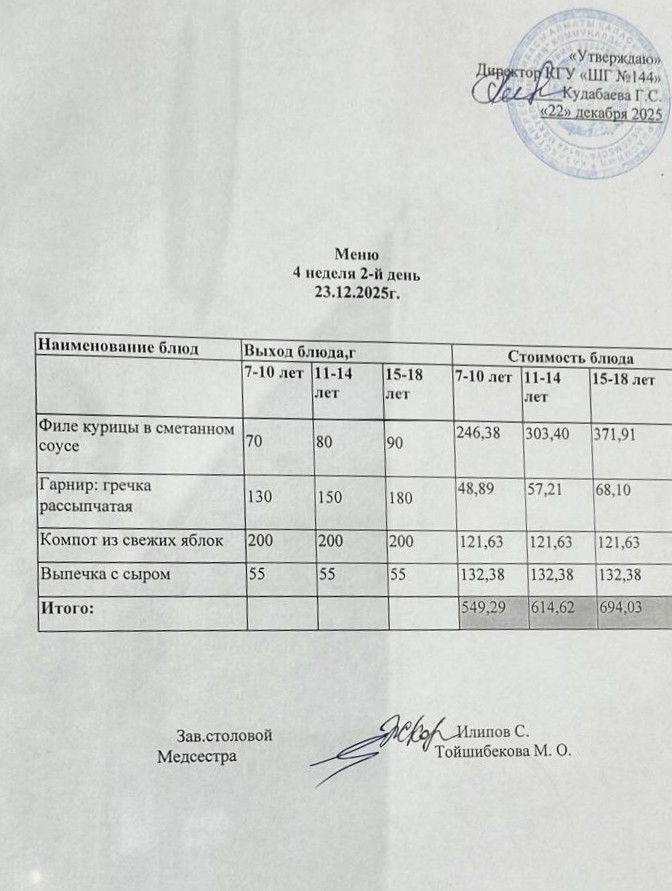 Меню 4 неделя 2-й день » №144 мектеп-гимназия